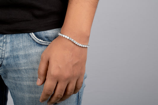Regular price Rs. 7,100.00Regular priceUnit price perSale price Rs. 7,100.00You know we had to move different with this one. We custom-designed this bracelet to shine from all angles. Featuring hand-set stones throughout, a guaranteed head turner. Metal :- 916 SS Stones :- CRYSTALS (PRECIOSA) -