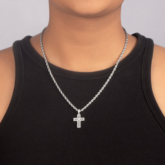 Regular price Rs. 5,500.00Regular priceUnit price perSale price Rs. 5,500.00The Iced Cross Pendant is a bold take on our original Crosses. Guaranteed to upgrade your fit; stacked or solo, it's the perfect pendant. Unmatched shine for unparalleled style. Metal :-... -