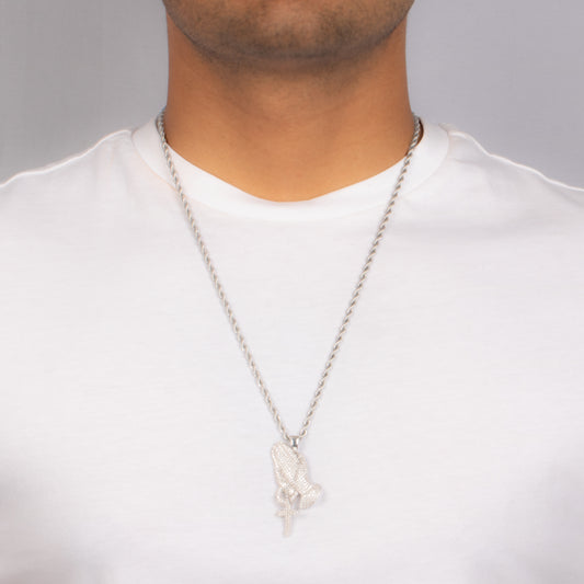 Regular price Rs. 7,100.00Regular priceUnit price perSale price Rs. 7,100.00Want a fresh look? We decided to take praying hands to another level and add a hanging cross. Both are flooded in handset stones. The pendant is an ideal accessory... -