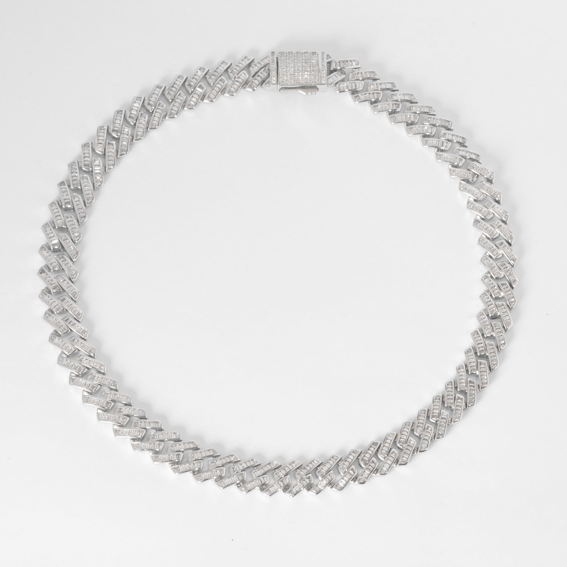 We custom-designed and moulded this unique link that features hand-set, baguette stones that shine from all angles. There isnt a bolder statement.