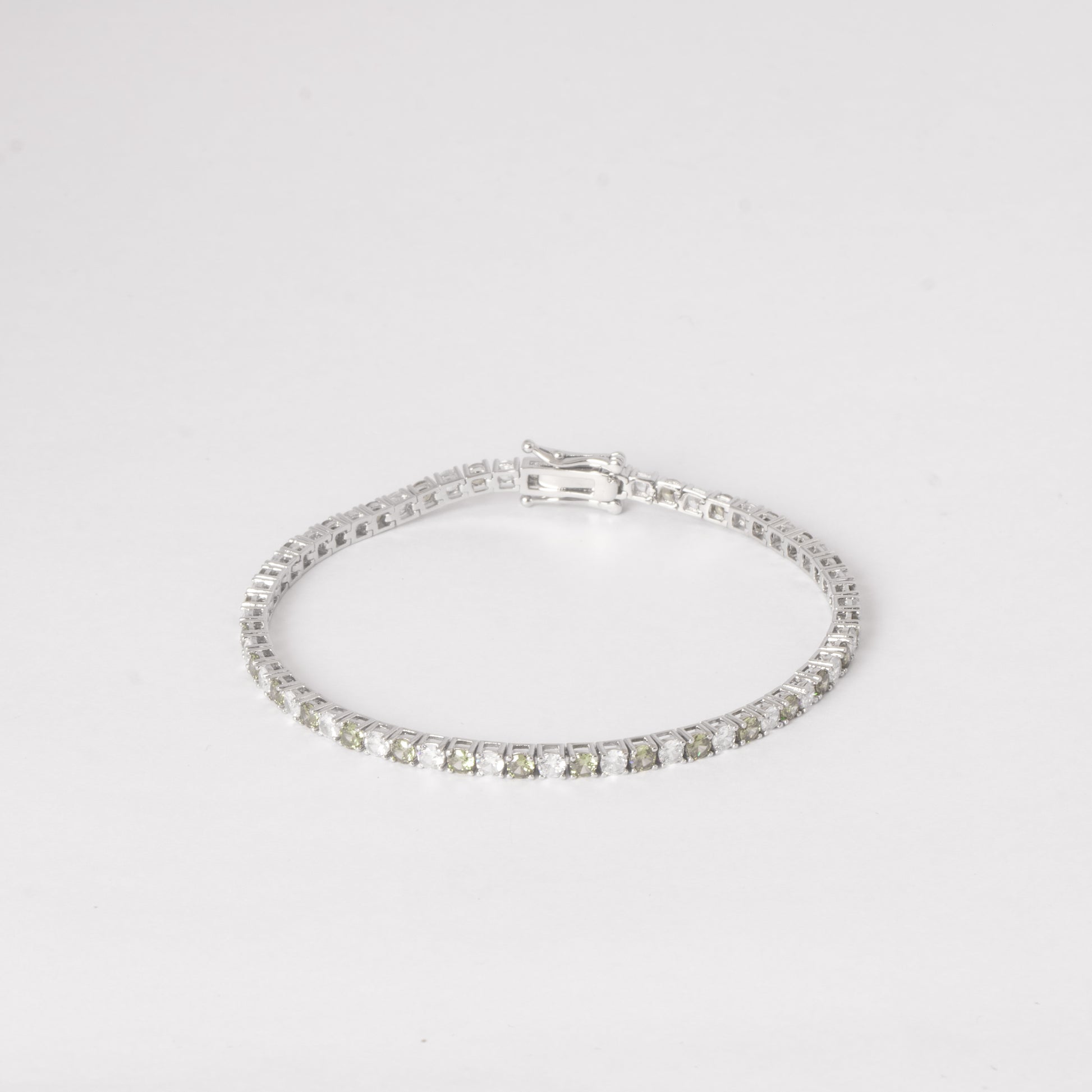 3MM TENNIS BRACELET- WHITE & OLIVE GREEN