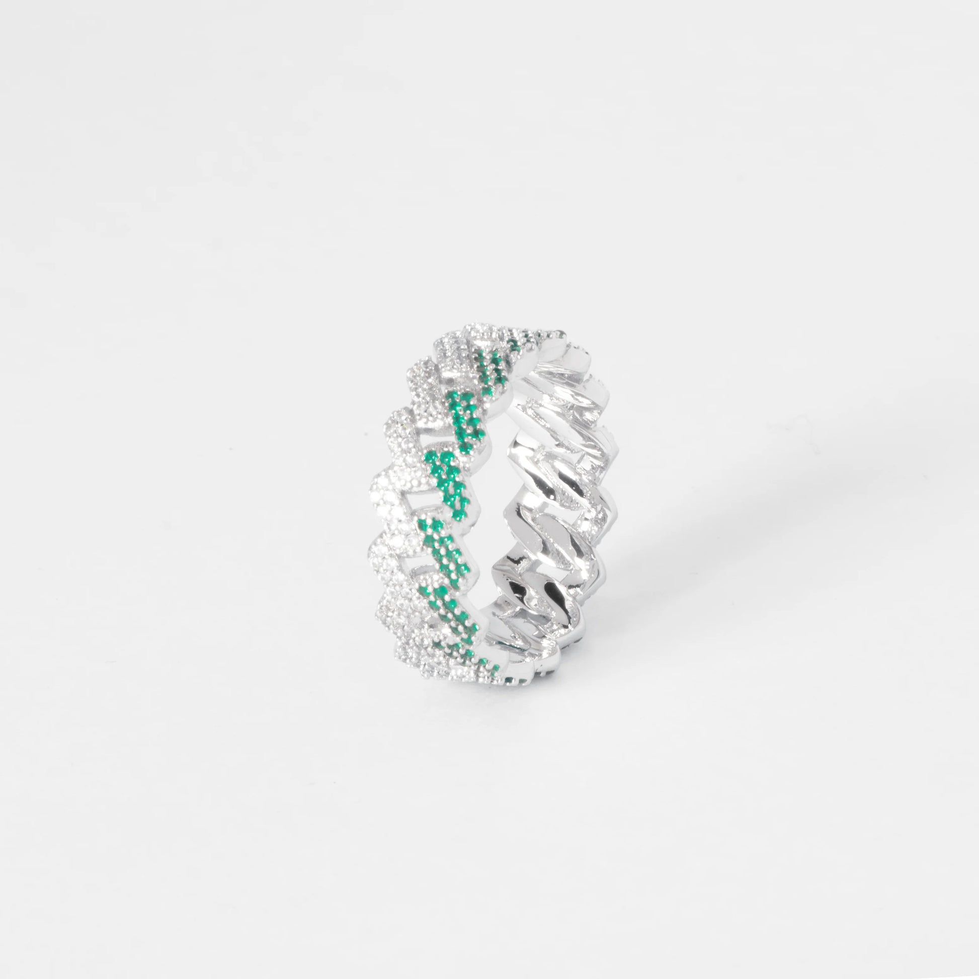 ICED PRONG CUBAN RING - GREEN